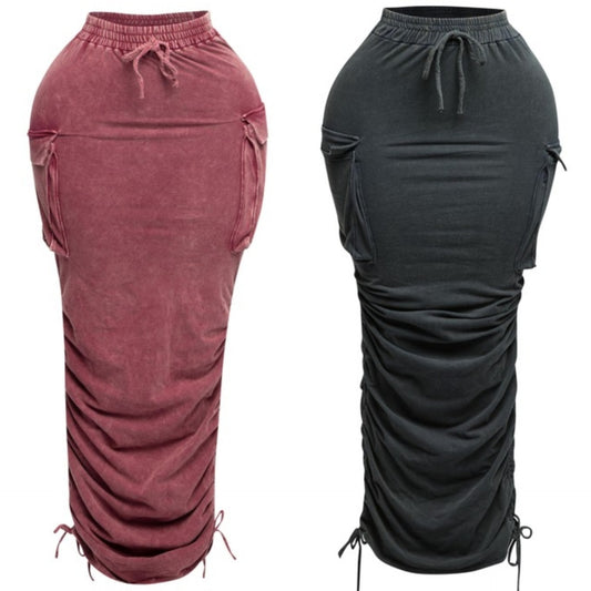 Mineral Washed Drawstring Skirt (Burgundy, Grey) Drawstring Can Be Adjusted At The Bottom Of Skirt ...