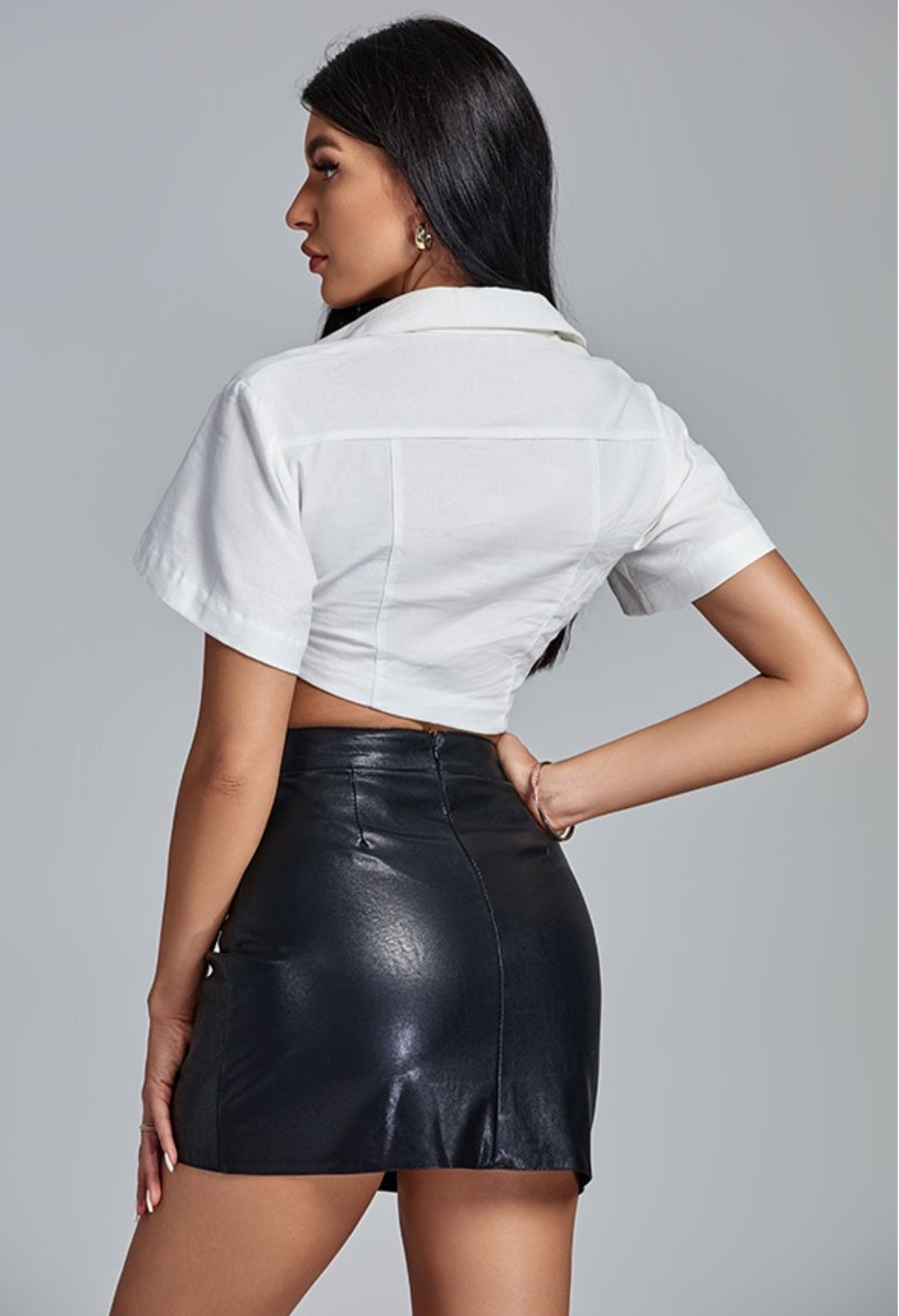 - Collard White Short Sleeve Asymmetric Crop Blouse