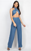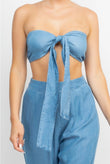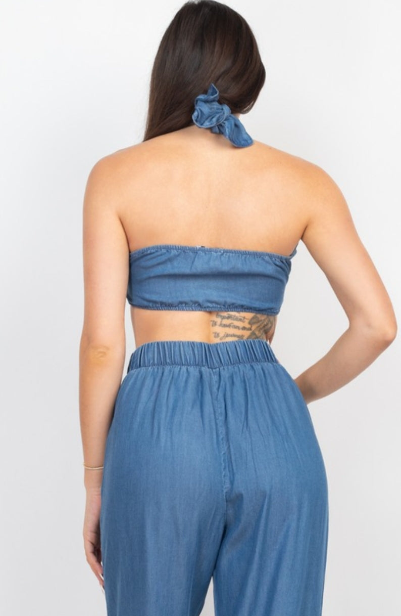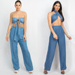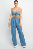 - Tied Tube Top With Wide Leg Pants (Light Denim, Medium Denim)