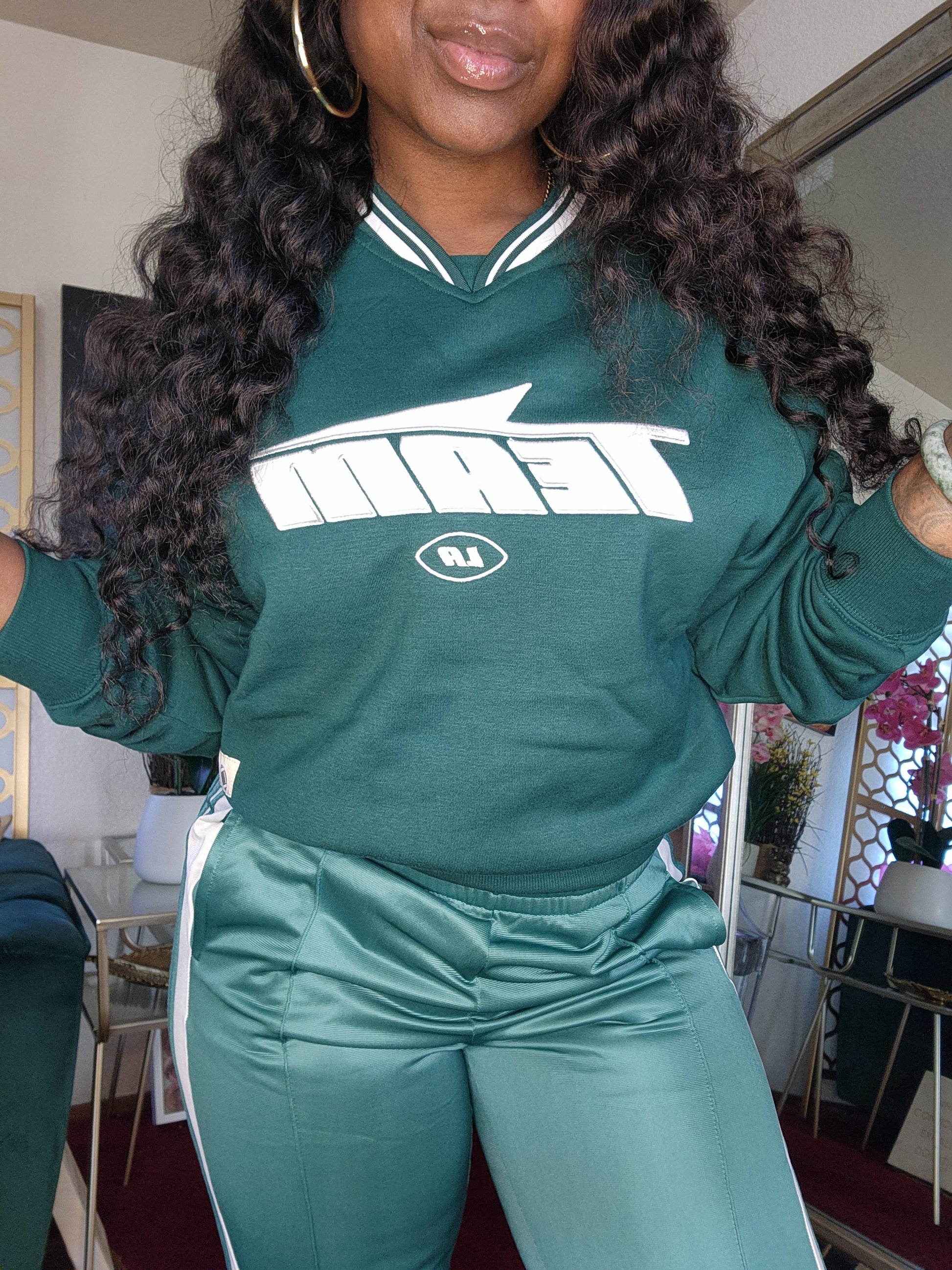 - Crew Neck Embroidered Sweatshirt (Hunter Green, Black) (Can Be Paired With Game Day Track Pants)