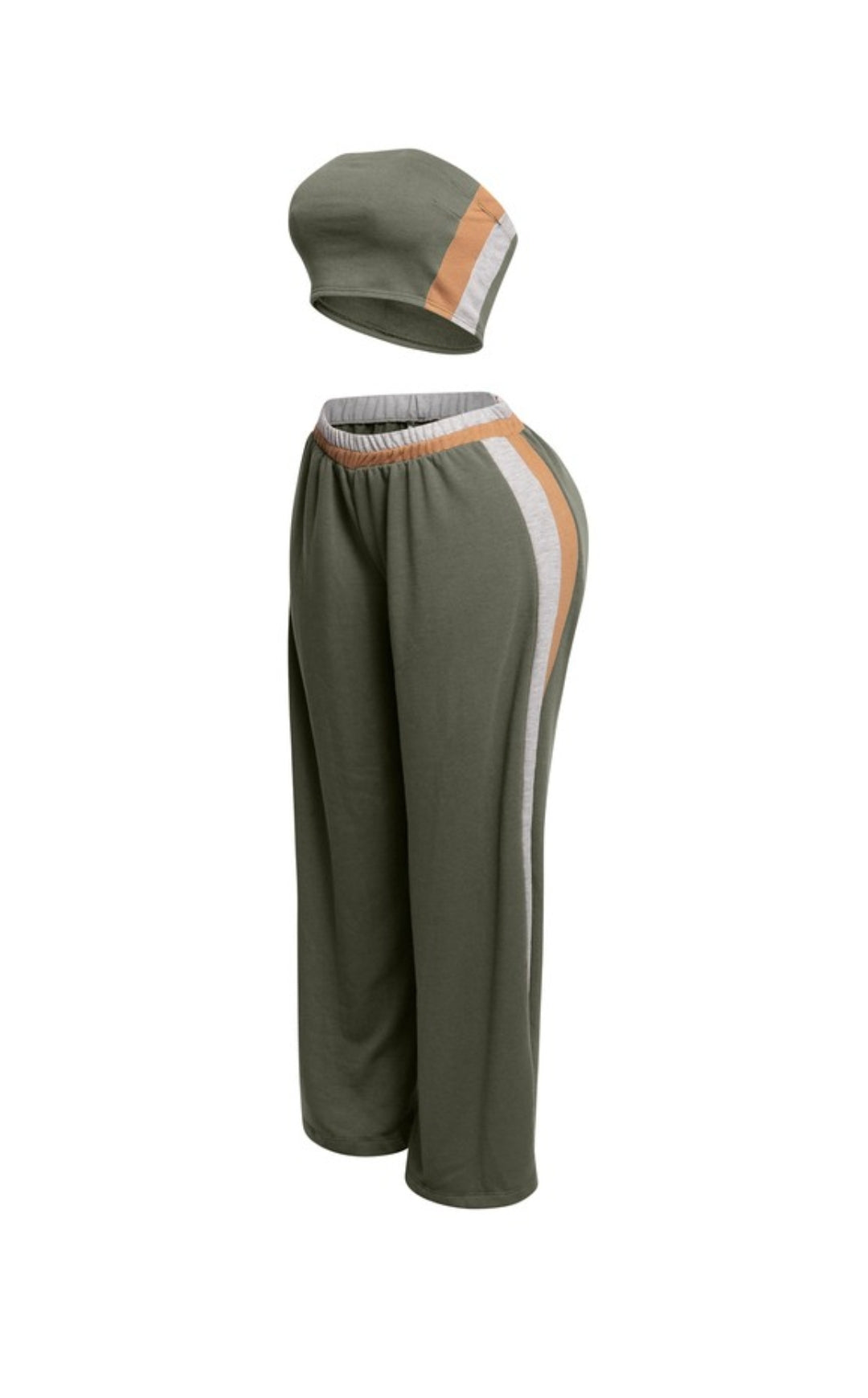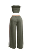- Strapless Crop Top W/Wide Leg Pants (Olive)