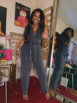 - Jumpsuit With Buttons Down The Front (Black Mineral Wash)