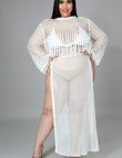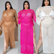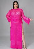 - Knitted/Fishnet Long Sleeve Fringe Set/Cover-Up (Fuchsia, Ivory, Mocha)