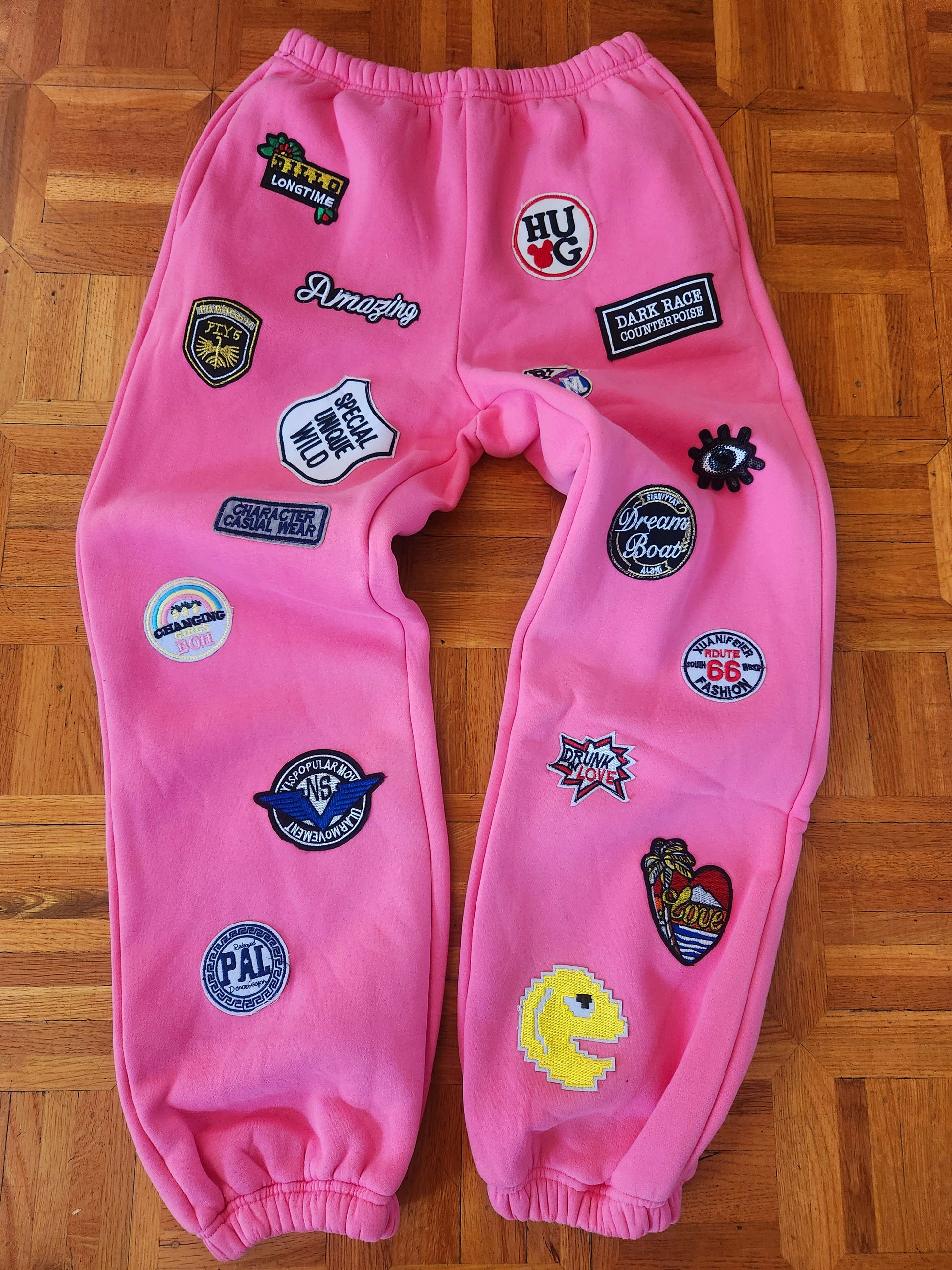 - High Waist Jogger Pants With Pockets & Patches (Pink)