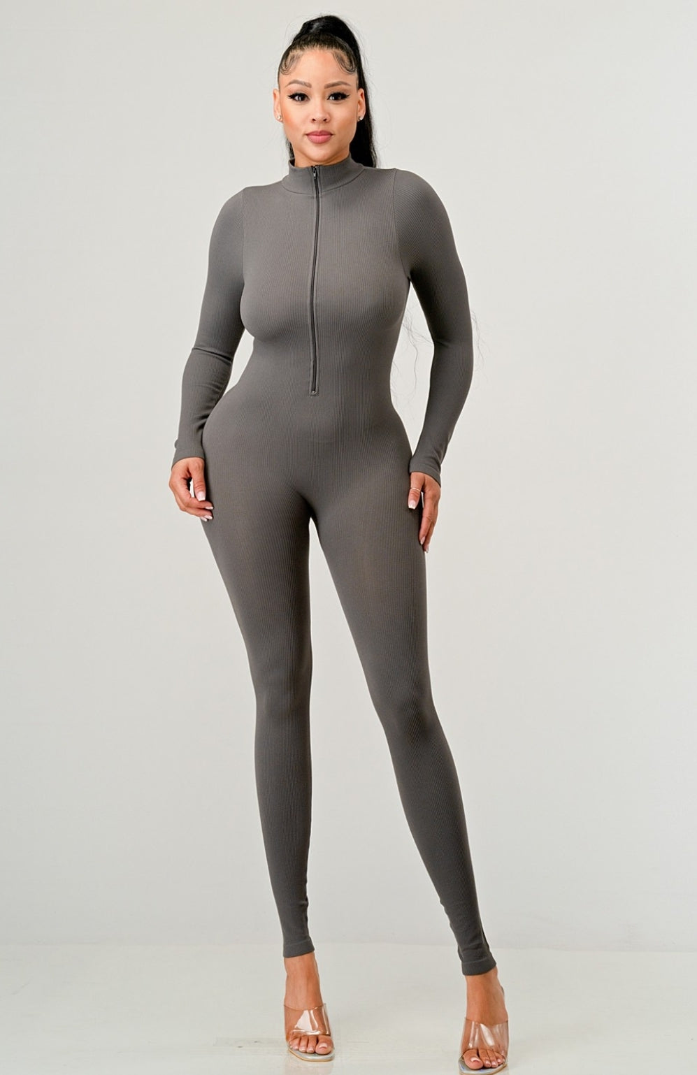 - Seamless Ribbed Bodysuit (Grey, Black)