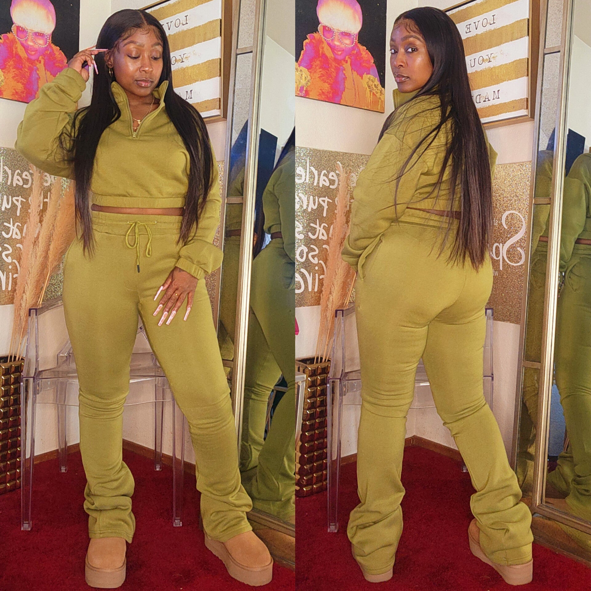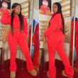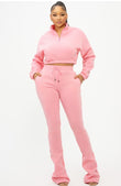 - Fleece Half Zip or Full Zip With Hood Sweatshirt With Stacked Joggers Adjustable Drawstring Waistline